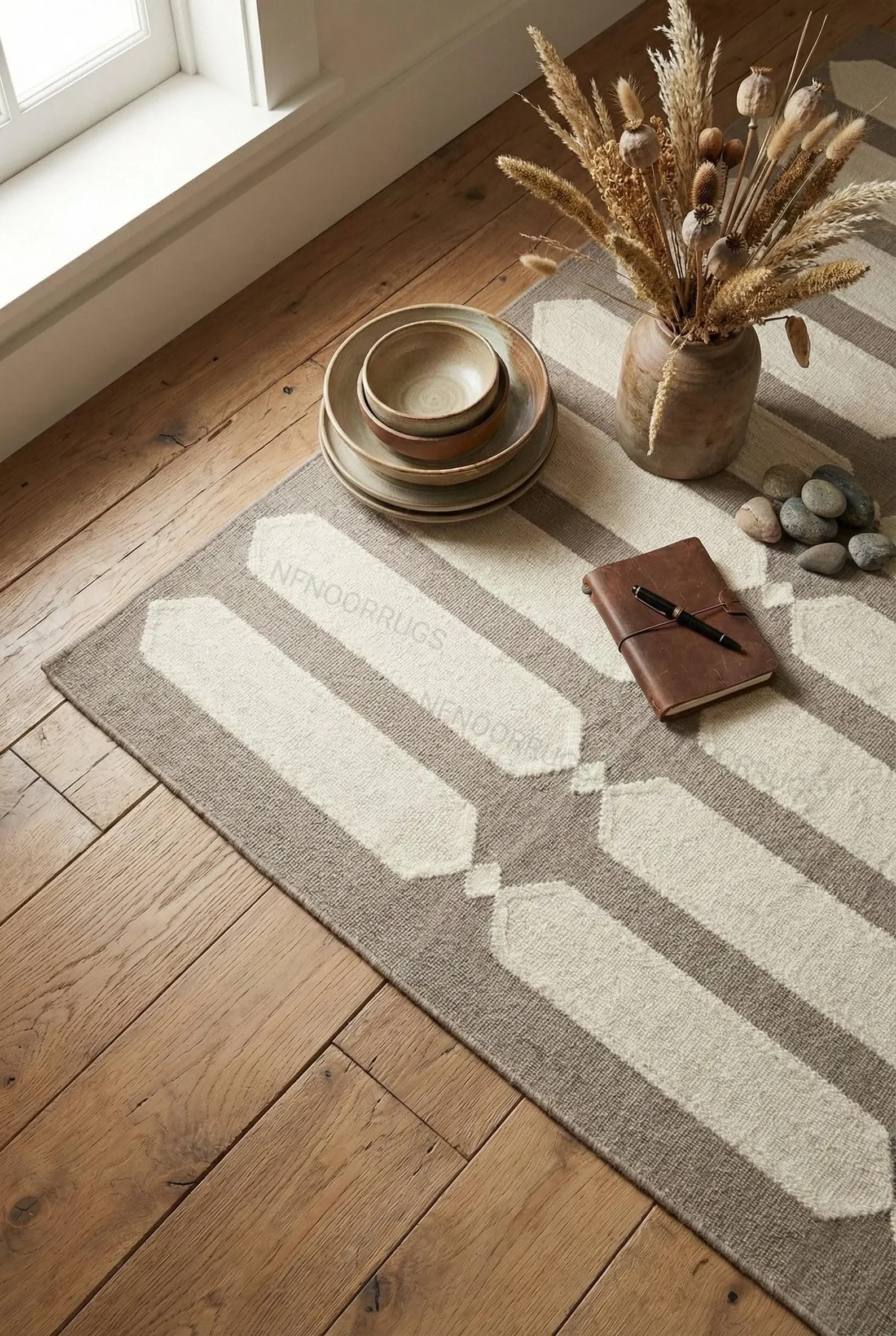 Roll up heavy winter rugs and swap them for a flatweave in neutral or muted tones. Cotton blends or outdoor-safe materials feel fresh and casual while keeping things grounded.